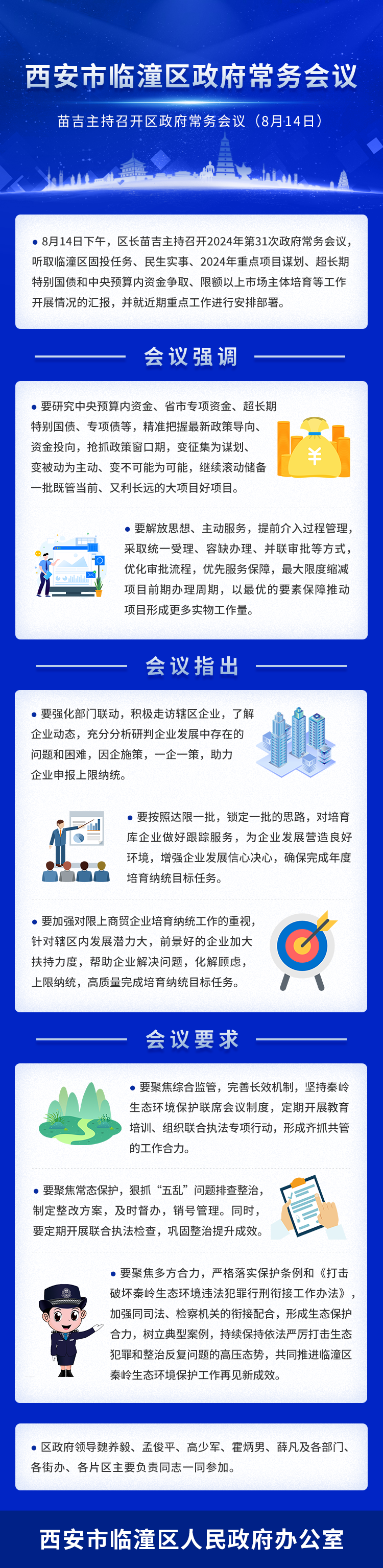 该内容以图解形式展示了临潼区政府常务会议(8月14日)的情况,包括会议的相关内容,但具体信息未详细提及