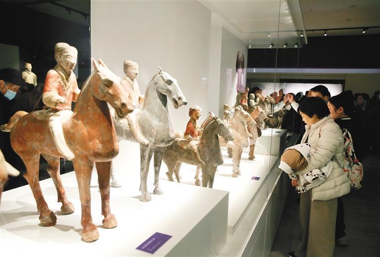 今年我市将聚焦陕西历史博物馆、西安博物院等重点文博场馆,探索文化遗产数字化保护、融合性转化、沉浸式展示新路径。图为市民游客在陕西历史博物馆秦汉馆参观。