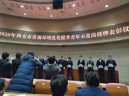 共青团西安市委、西安市营商办为表彰先进,树立典型,激励更多青年集体投身营商环境优化提升青年示范岗创建活动,助力打造一流营商环境,经过对申报集体的评审、公示、决定命名西安市新城区人力资源和社会保障局职业技能培训鉴定中心等100家青年集体,为2020年西安市营商环境优化提升青年示范岗,并予以授牌表彰。临潼区投资合作局获此殊荣。